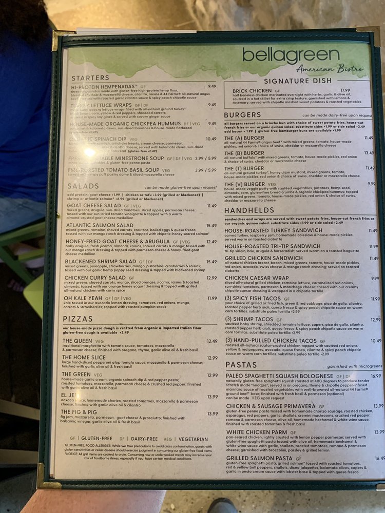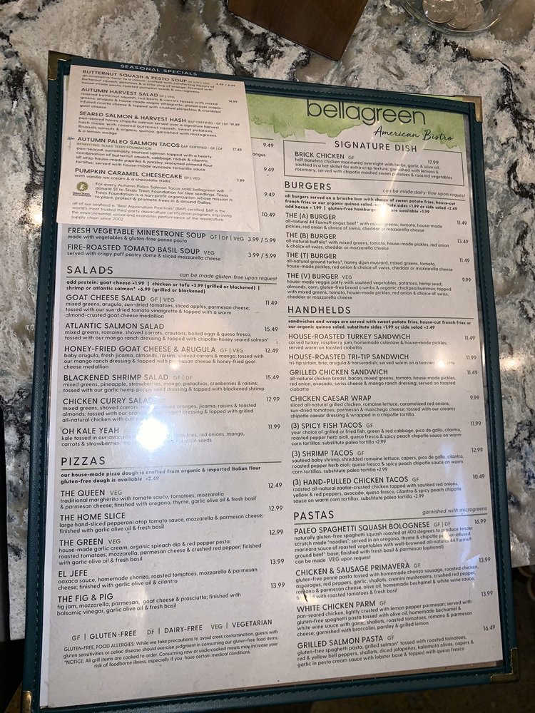 bellagreen Menu (2025 Update)